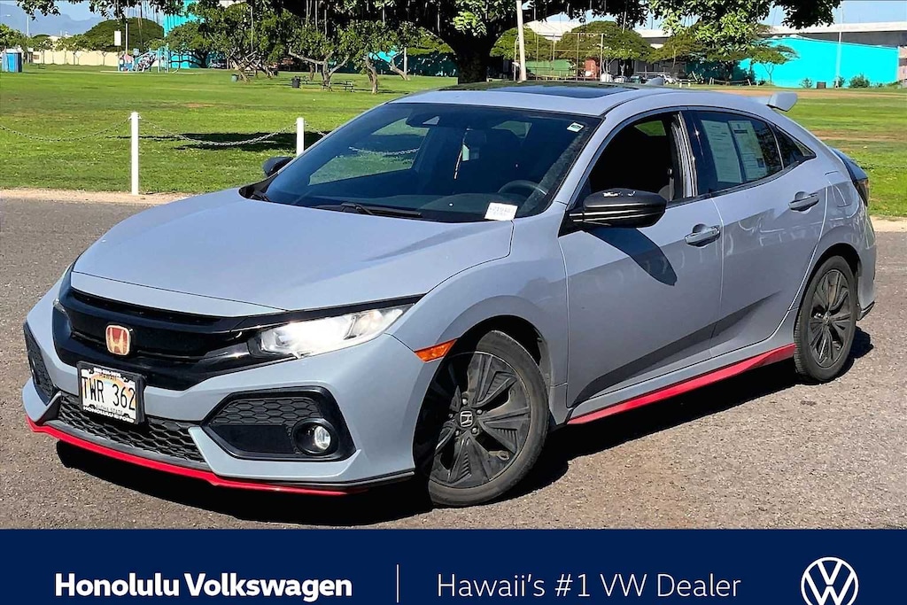 Modern Steel Metallic 2019 Honda Civic EX 4D Hatchback FWD CVT 1.5L I4 DOHC 16V Black Cloth.