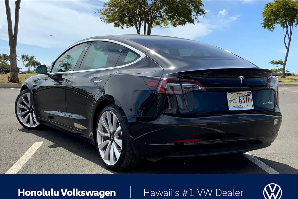 Black 2019 Tesla Model 3 Performance 4D Sedan AWD 1-Speed Automatic Electric Motor ABS brakes, Active Cruise Control, Alloy wheels, Compass, Electronic Stability Control, Front dual zone A/C, Heated door mirrors, Heated front seats, Heated rear seats, Illuminated entry, Low tire pressure warning, Navigation System, Remote keyless entry, Traction control.